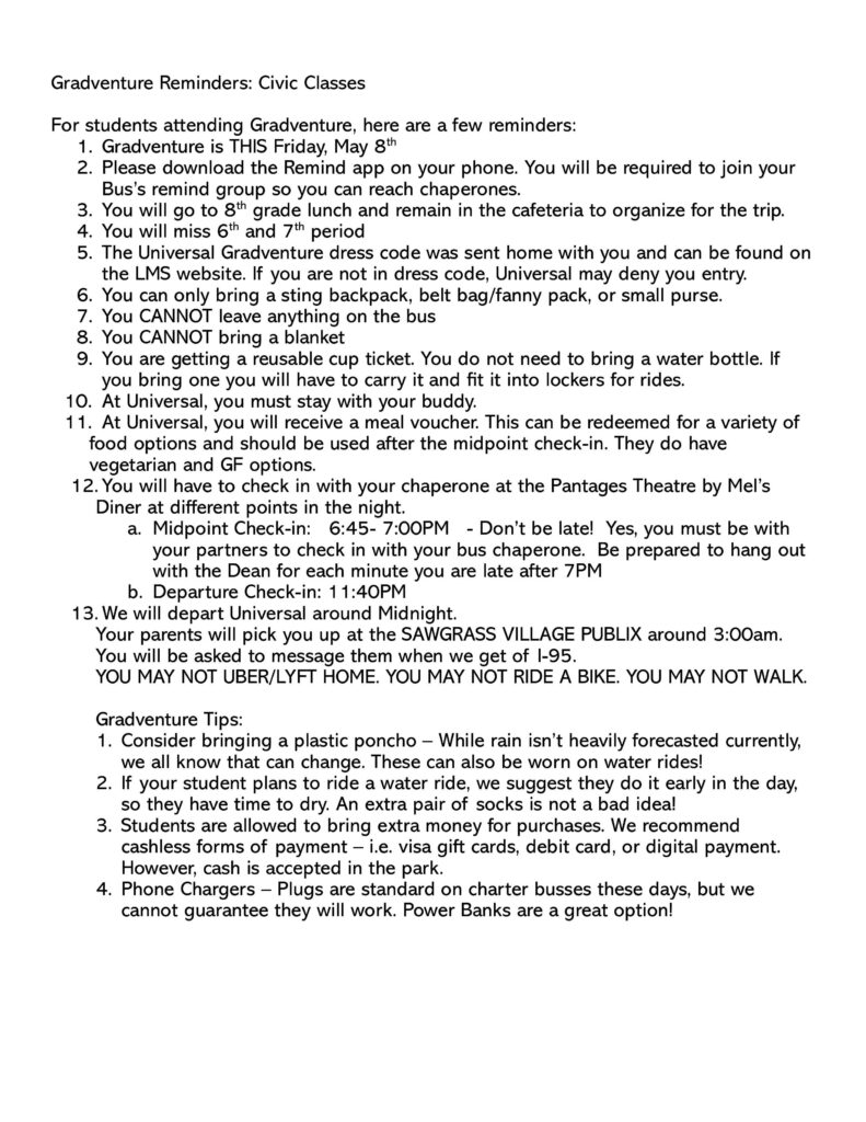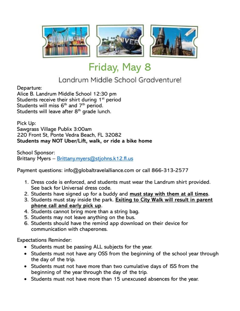 All 8th graders are expected to meet the 8th grade Event Expectations to attend these special events!